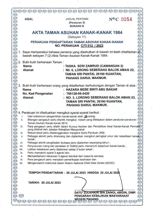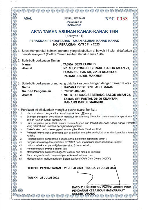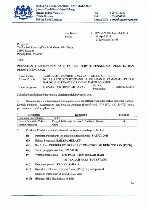 Tadika/ Taska Seri Zamrud (operated by ZARA ZAIDI GROUP SDN BHD)